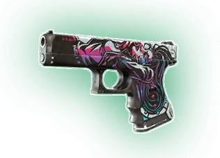The expensive and extremely powerful Desert Eagle is an iconic pistol that is not easy to master, even though it is surprisingly accurate at long ranges. Its austere black and white design is embellished with pearlescent elements.