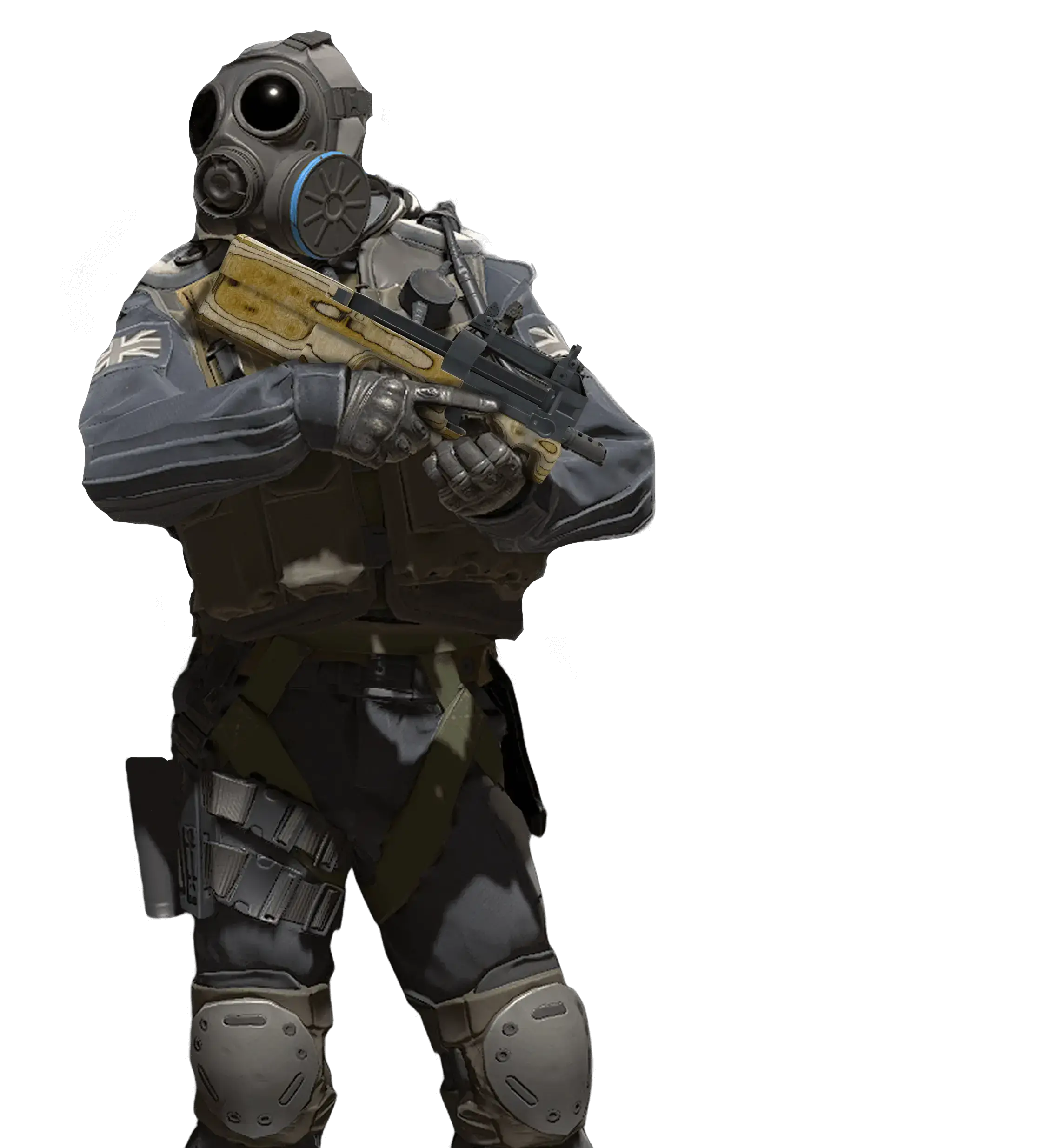 The P90 is easily recognizable by its unique design called «bull-pup.» This weapon is ideal for shooting on the move thanks to its high magazine capacity and low recoil. The wooden base is hand-carved with a pattern, then sanded and laminated.