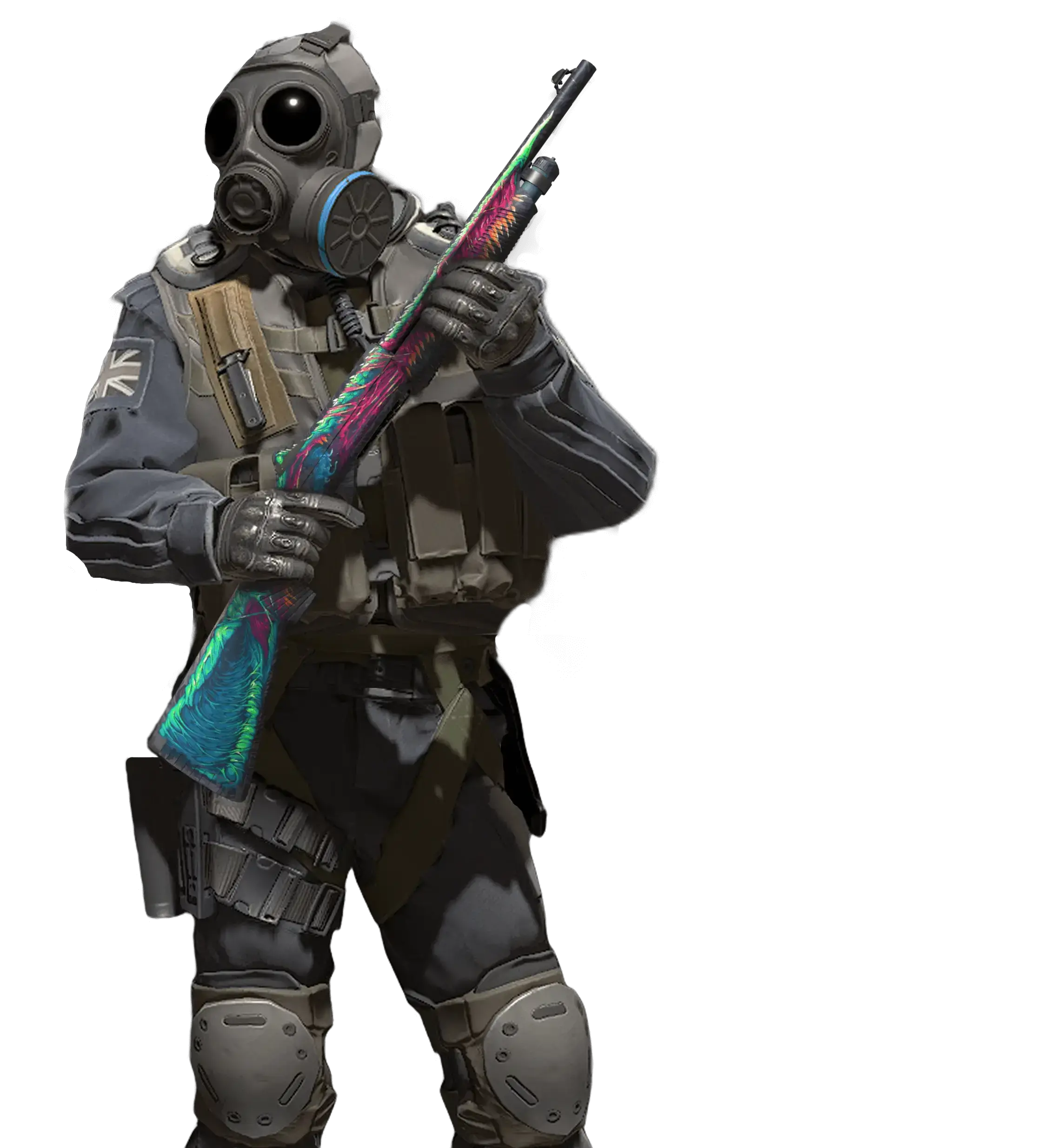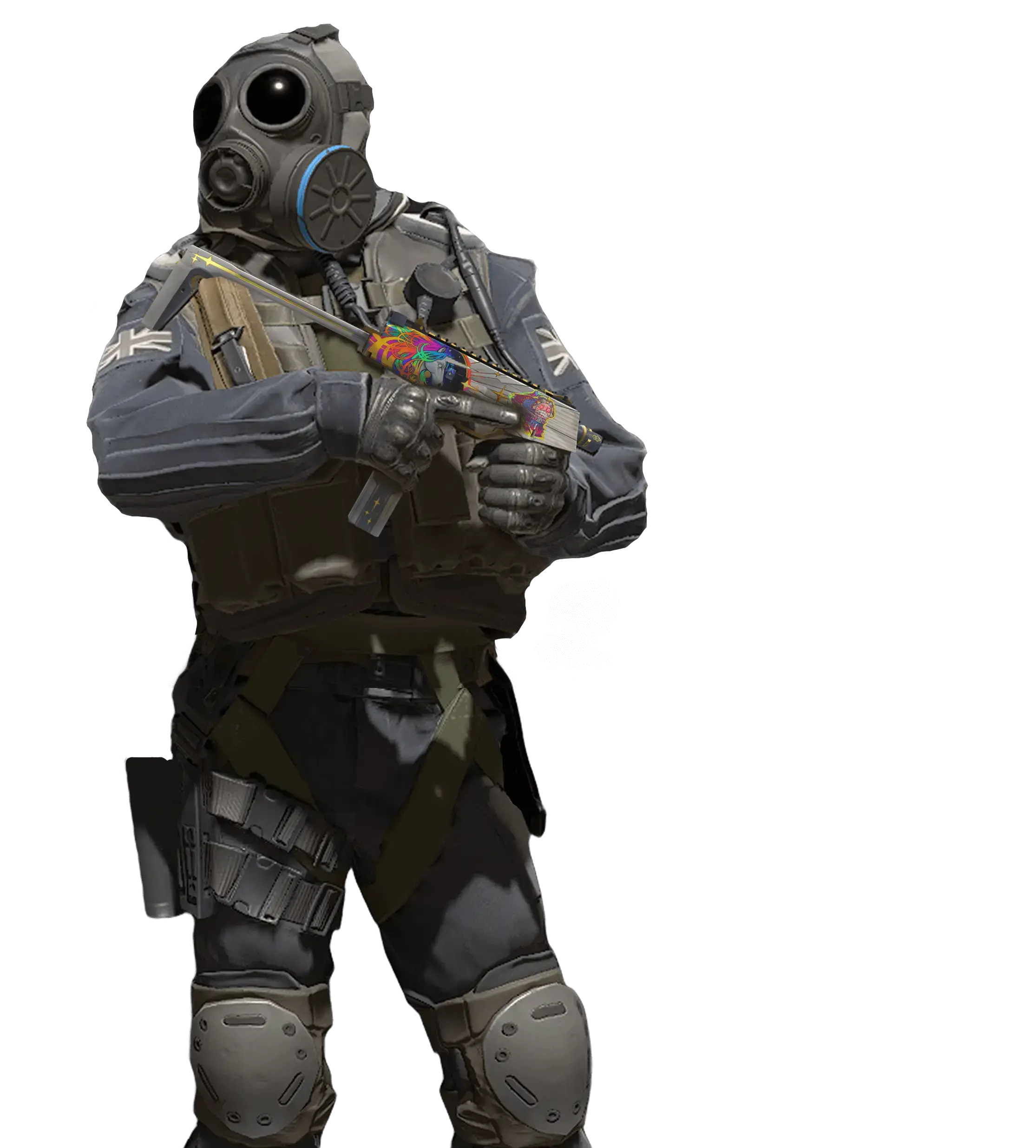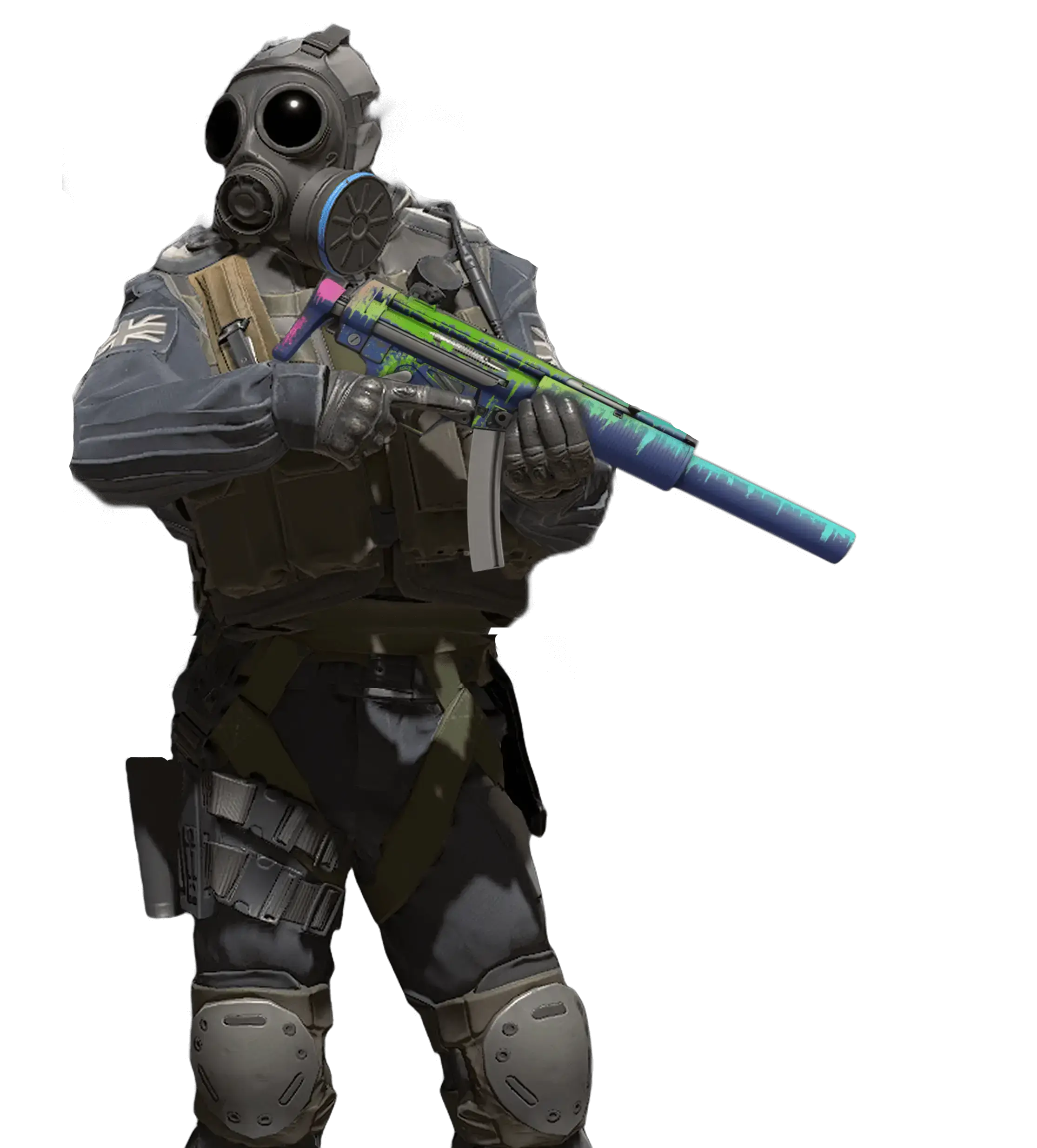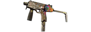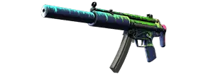 The one and only MP5 is perhaps the most versatile and popular submachine gun in the world. The SD modification is equipped with an integrated silencer, which makes this already formidable weapon even quieter. The body is covered with a dark base, onto which bright pink, poisonous green, and blue-green colors have been poured.