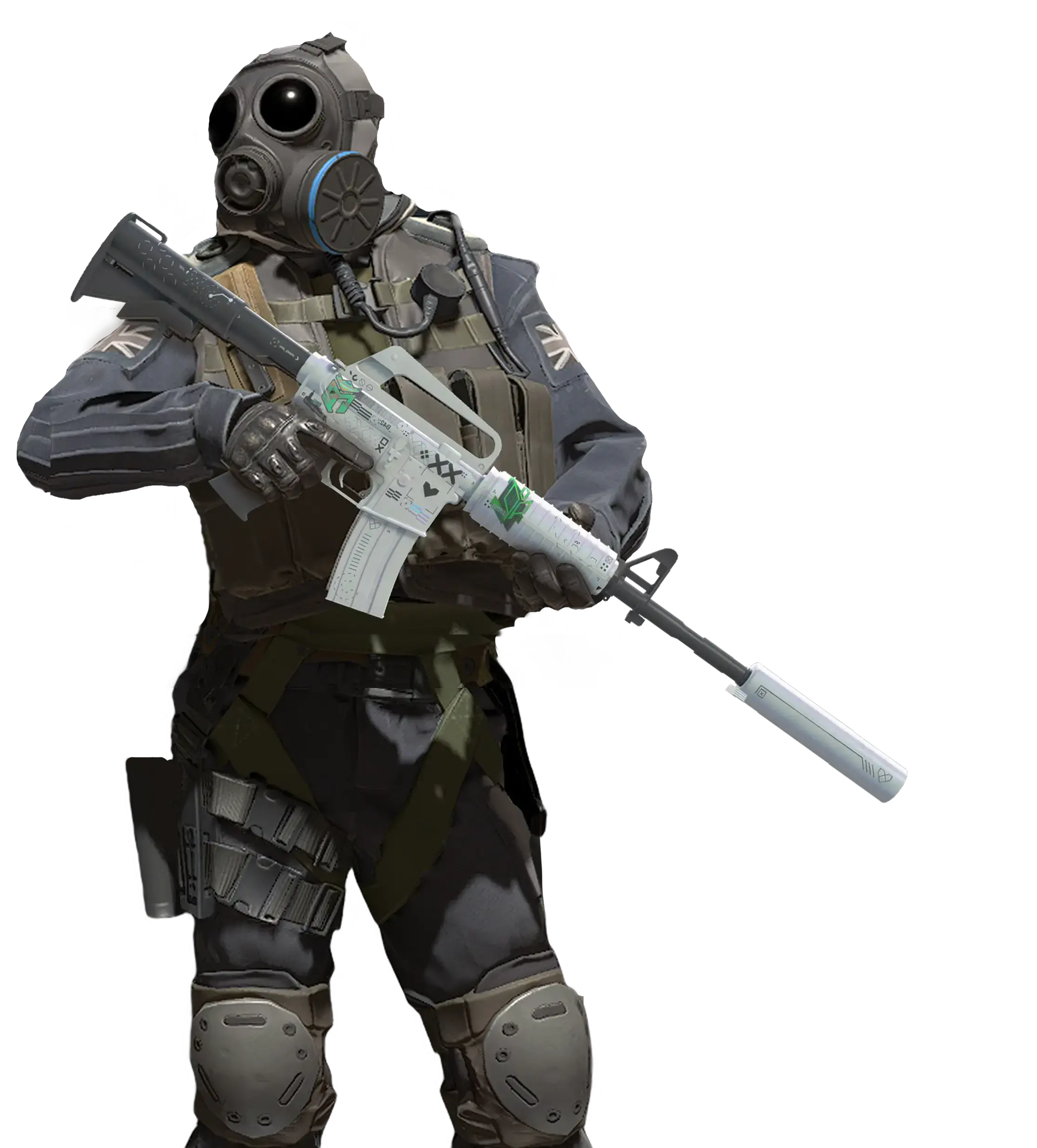 The silent M4A1 carbine has a smaller magazine than its non-silenced counterpart, but it offers quieter firing with less recoil and increased accuracy. The austere black and white design is embellished with pearlescent elements.