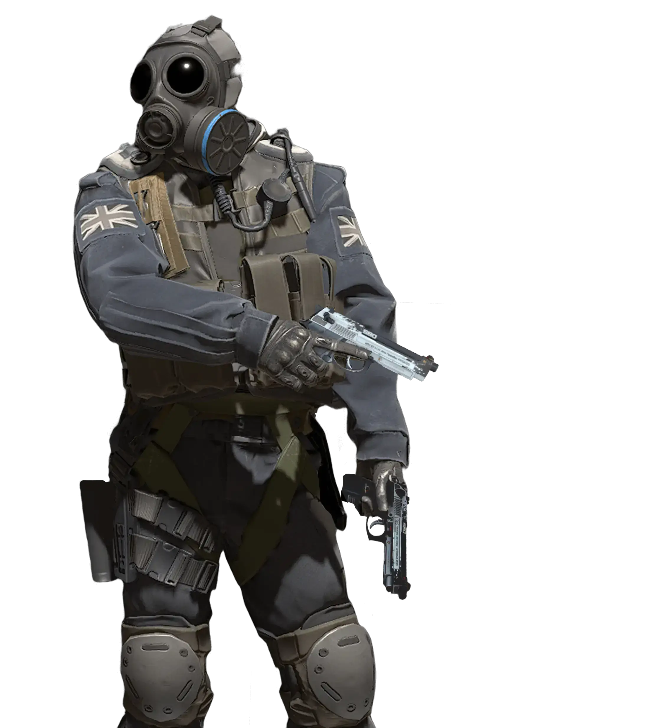Firing two Beretta pistols with large magazines simultaneously reduces accuracy and increases reload time. On the other hand, you can fire two Berettas at once. The body features a black and white pattern with red accents in a high-tech style. Always follow the safety instructions.