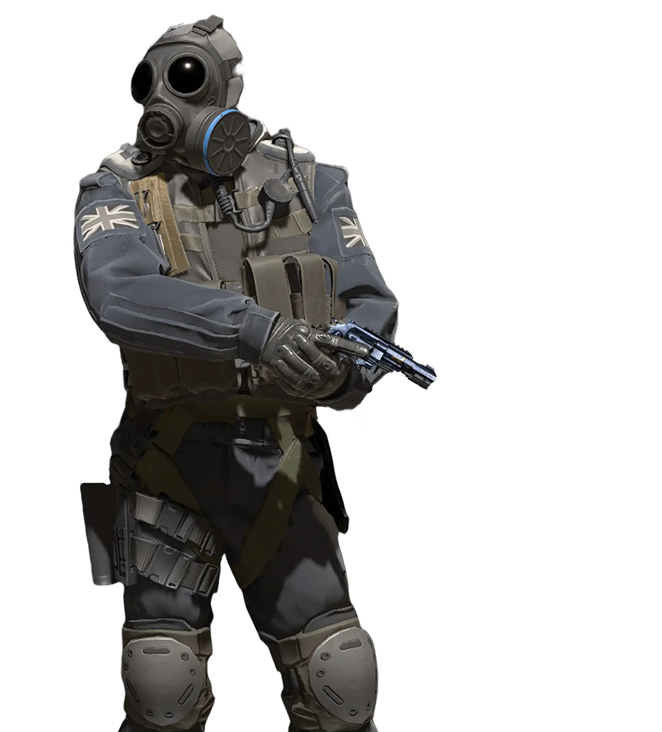 The R8 revolver is extremely accurate and powerful, but its trigger is notorious for being stiff. If your opponent is already close, don't hesitate to pull the trigger. The ivory handle is complemented by ornate engraving on blue metal.