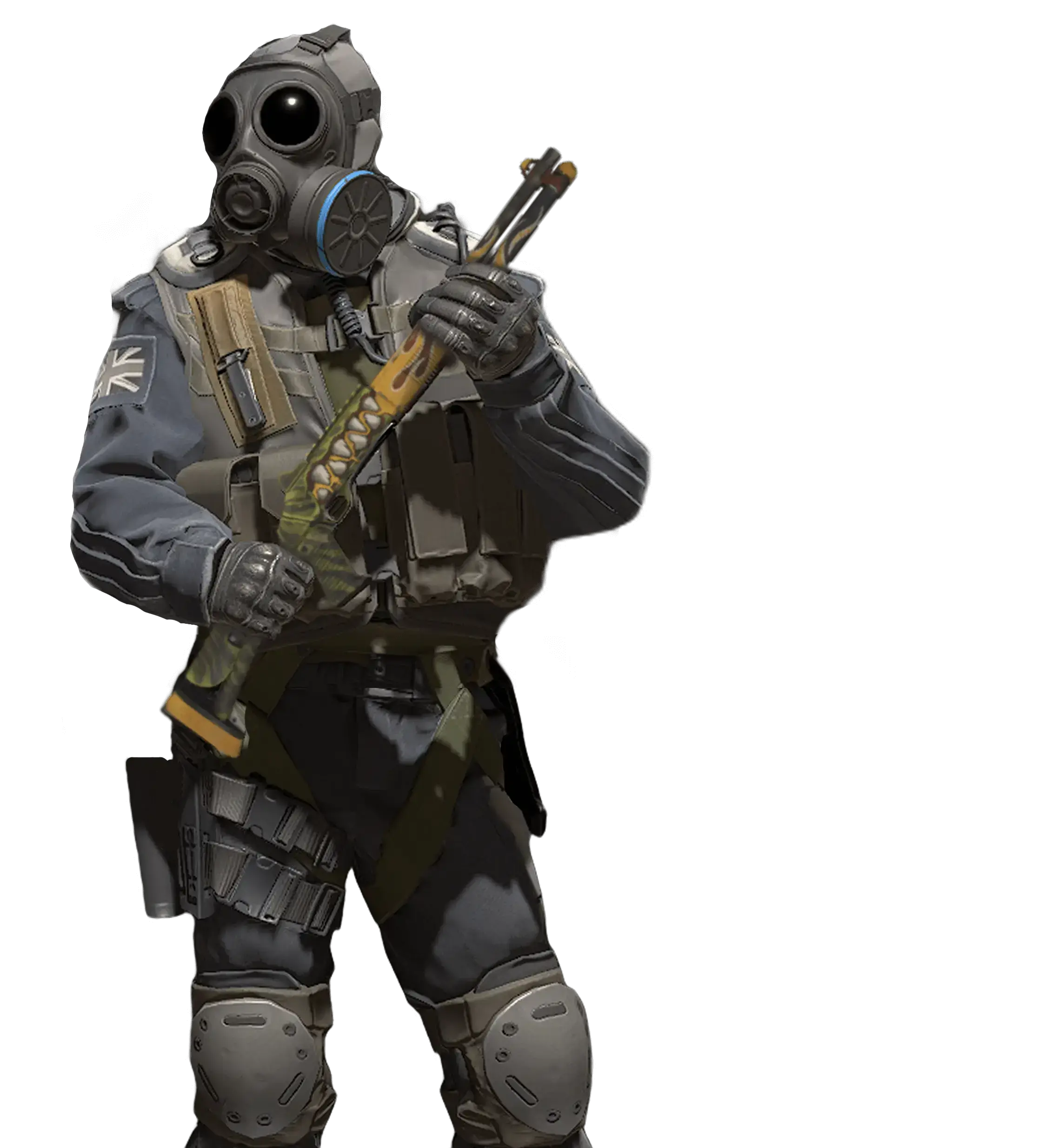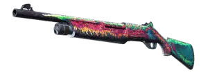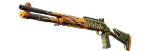 The XM1014 is a powerful, fully automatic shotgun that lives up to its hefty size with the ability to quickly fill a room with lead. The body is decorated with a picture of an alligator spewing flames.